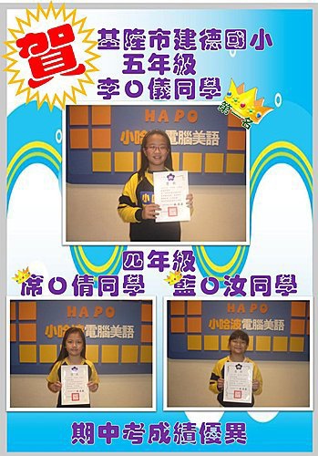 四年級 黃O維 同學 三年級 陳O柔 同學 三年級 官O佟 同學 .
